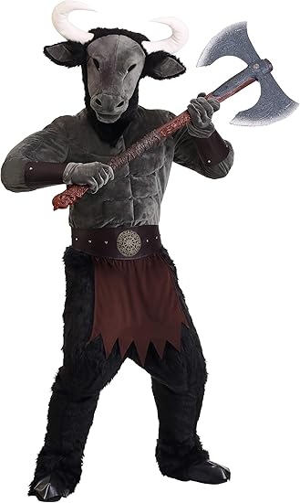 Here we have Tiffany and Phil, daughter of her grandmother Medusa and son of his grandfather Minotaur of the Labyrinth. Why am I mentioning their grandparents, because they are going on Halloween dressed as them. Tiffany is obviously her grandma Medusa wearing a Greek costume https://m.media-amazon.com/images/I....._AC_SX569_.jpg while Phil is wearing a loin cloth with a fake axe in hand like his grandfather; minus the fake axe, for his costume https://m.media-amazon.com/images/I....._AC_SY550_.jpg