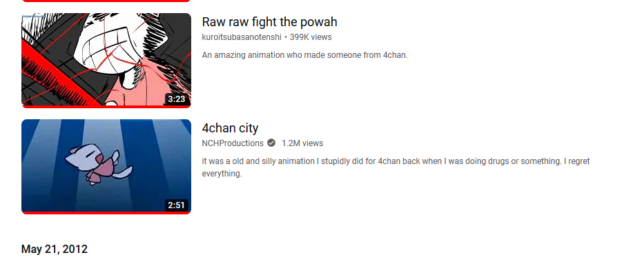 i absolutely agree though and i think the animations themselves are super neat, that and browsing through an old account's youtube history made me go What The Fuck Why Is She Here This Early I Didn't Even Notice