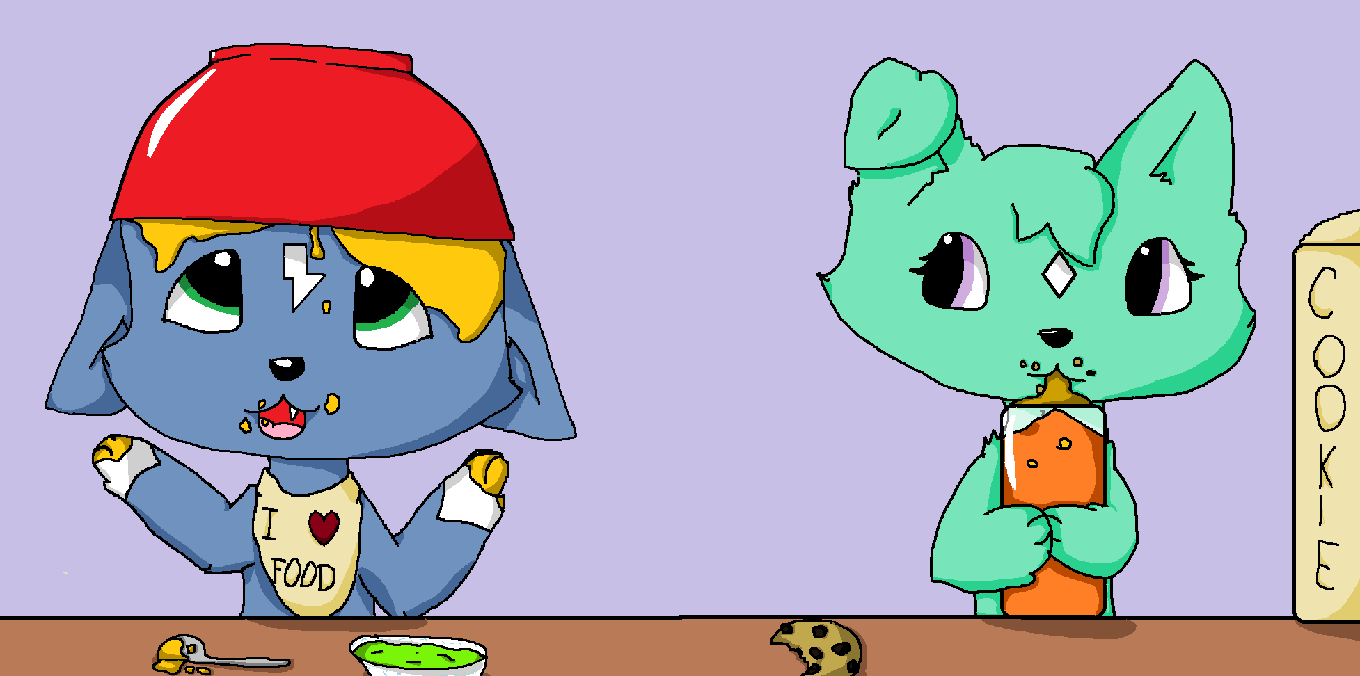 Felicity and Nene are hanging out, so they're having soup and snacks for dinner! But Felicity doesn't seem to want her soup...this is a redraw of my first ever babyfur art, from I want to say 2017 or 2018?{originally made 27 January 2025}