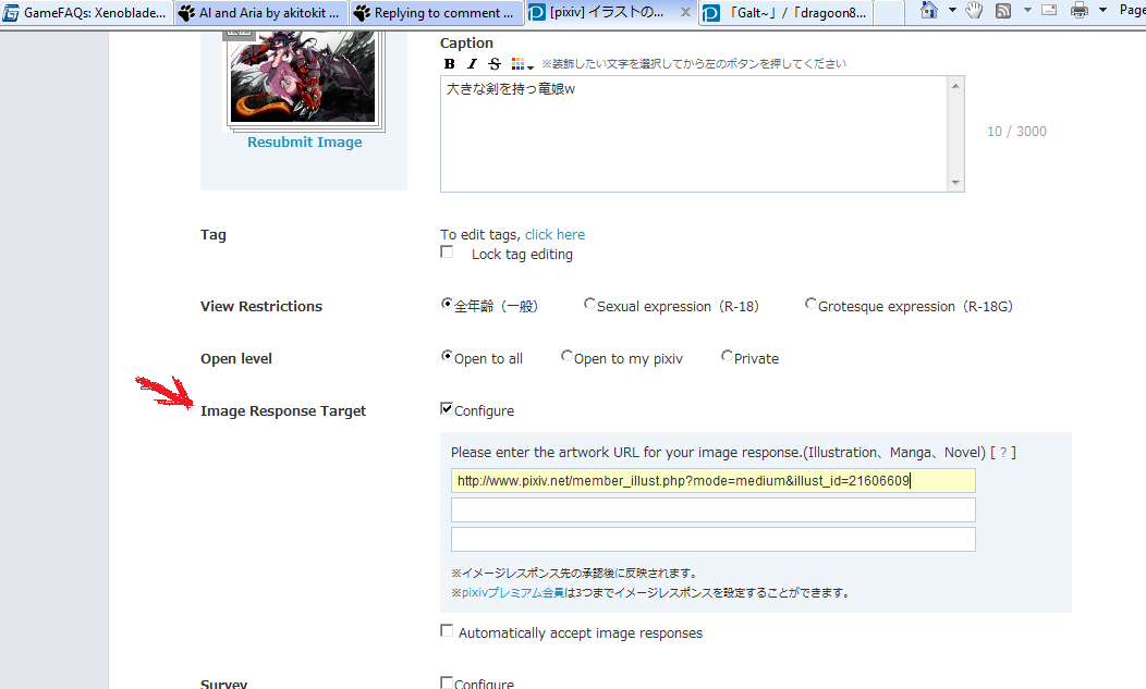 image response is to attach you image to one of her work, something like replying to her picture using a picture of yours