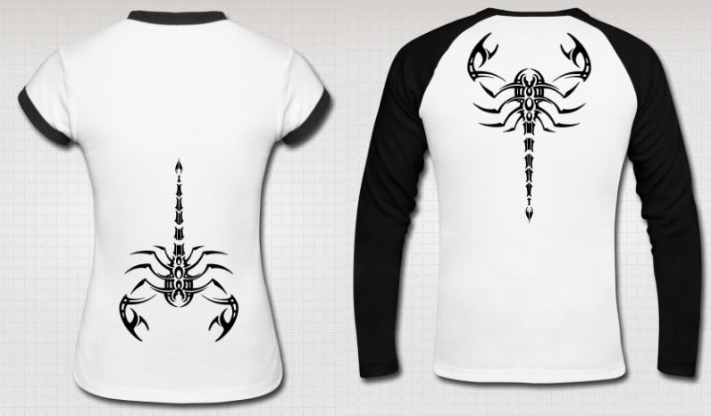 Tribal Scorpio design for my Tshirts, this design is meant for the back of the shirt going from mid back to lower back for girls and for the men the image would be flipped vertically and would go across the shoulders and down the back.