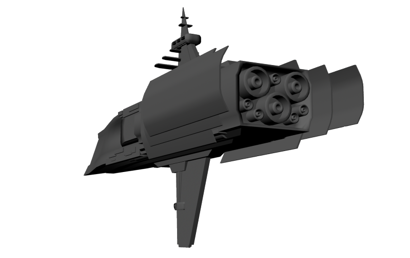 From there I will look farther back. Your side panels I would suspect are for shielding the ships hull. It possibly is also for generating a reflector field of some sort? No matter, If you watch the starwars cartoon show (Will never be mentioned ever again), or Battle Star Galactica, then you would understand that a small bomber can sneak into loos parts of a large ship and destroy vital parts of the ship.