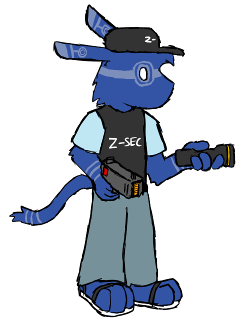 consolidated asked for a GELF character, but let me choose the job they had. There are some planets in the ITS universe (Just a small handful, it's currently under quarantine) that are afflicted by a zombie infestation. Thus, I figured it'd be appropriate to make his GELF a zombie security (Z-SEC) GELF. :3Transparent version here: http://i942.photobucket.com/albums/.....ELFTrans-2.png