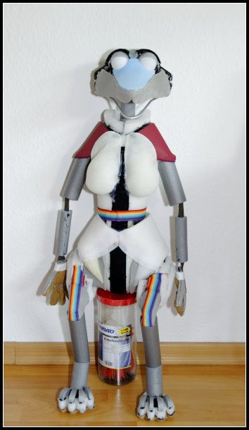 I made these two arctic vixen hand-puppets for the Eurofurence 18 Pawpet-Show. The picture is from the second rehearsal.