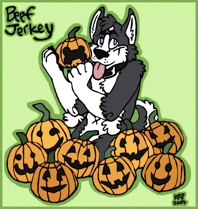 She drew my character, Beef Jerky with some punkins. :3