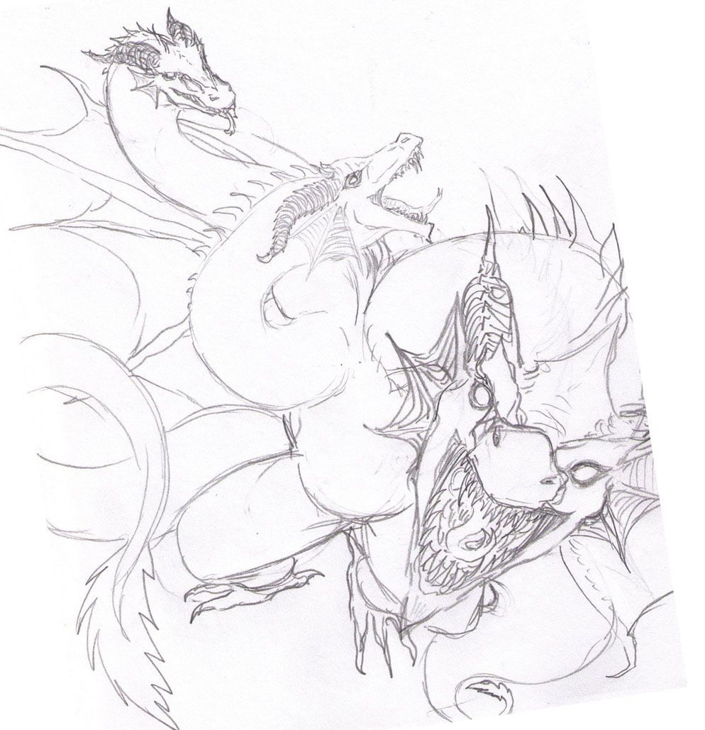A friend did a sketch yesterday and gave me permission to redraw it. I don't know anything about Godzilla, so I'm taking her word for it that this is Ghidorah. :P