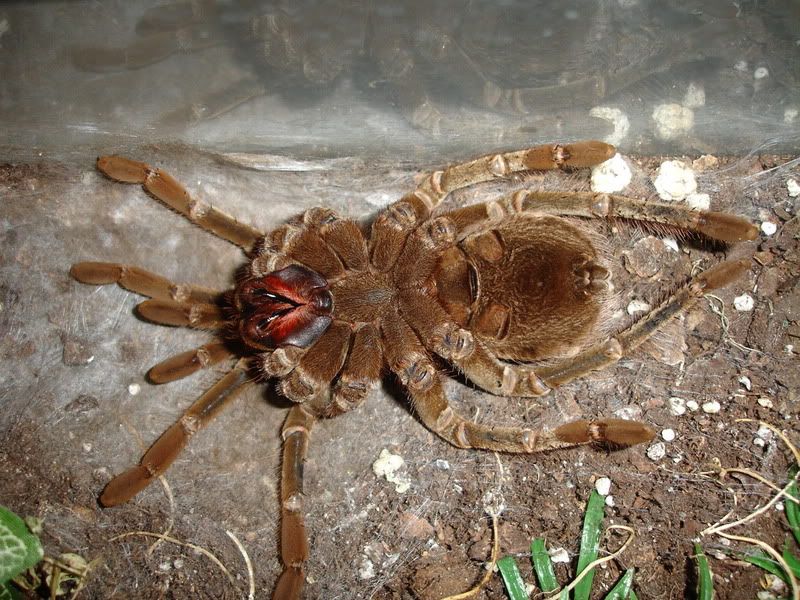 I didn't know their fangs were white after molting. I've seen different species of roaches and mealworms that are white right after molting, I guess it's like that. That's really cool. This was a few days after molting, but seeing as I've had her for about two years and this is the first time she's ever molted it was a momentous occasion.