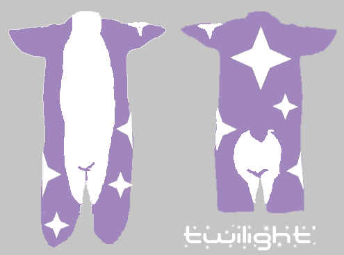 I never actually made a model sheet with accurate star placement. I worked from this drawing, one big star on back, 3 stars on the torso/legs, symmetrically placed: